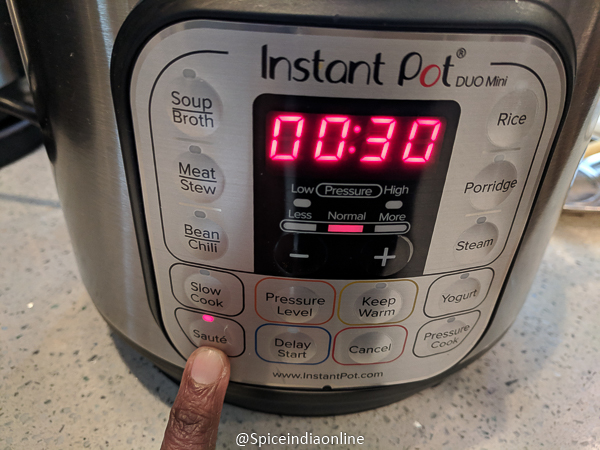 Now choose saute mode which will run about 30 minutes.