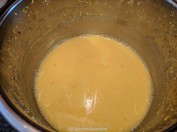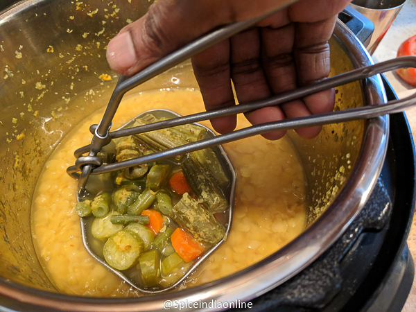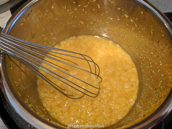 • Remove the trivet and mash the cooked dal. Set this aside.