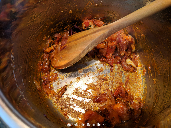 Saute the masala well… it will start to stick to the bottom as your saute.