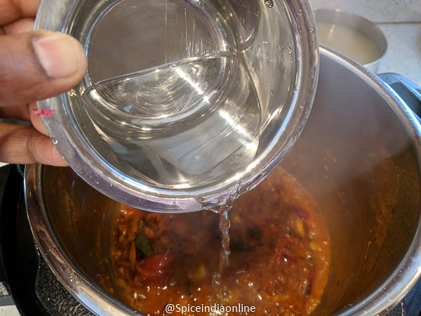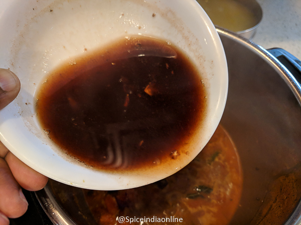 • Pour the tamarind extract along with water and stir to combine.
