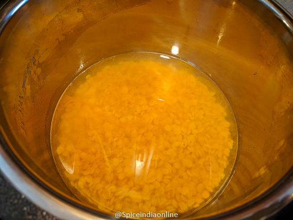• Soak Toor dal / split pigeon pea in enough water for 30 minutes. Soaking helps to cook the dal evenly and also helps with digestion.