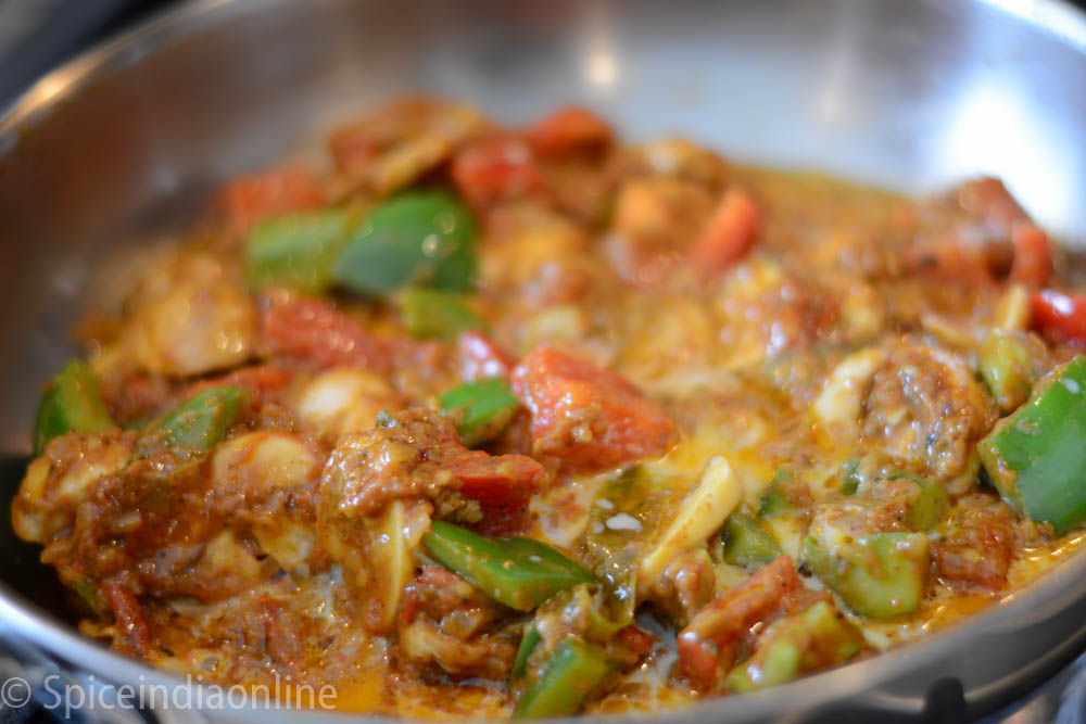 You may use Cauliflower / Green peas / Chicken / Mixed veggies / Shrimp / Boiled egg… there are many possibilities. This is like an all -purpose gravy but whatever you add make sure you include bell pepper. Hope this helps, thanks for visiting.