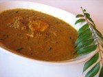 Now heat oil in a sauce pan, splutter mustard and curry leaves. Add the chopped onions, green chili and fry till they are evenly browned. Add the ground masala powder with turmeric and fry for few minutes. Add the chopped tomatoes, tamarind pulp, 1/4 cup water and salt. When this actually starts to boil, add the fish and cook for 5 minutes over low flame or until the fish is cooked through. When done, add the coconut milk and simmer for few minutes. Switch off and serve hot with rice.