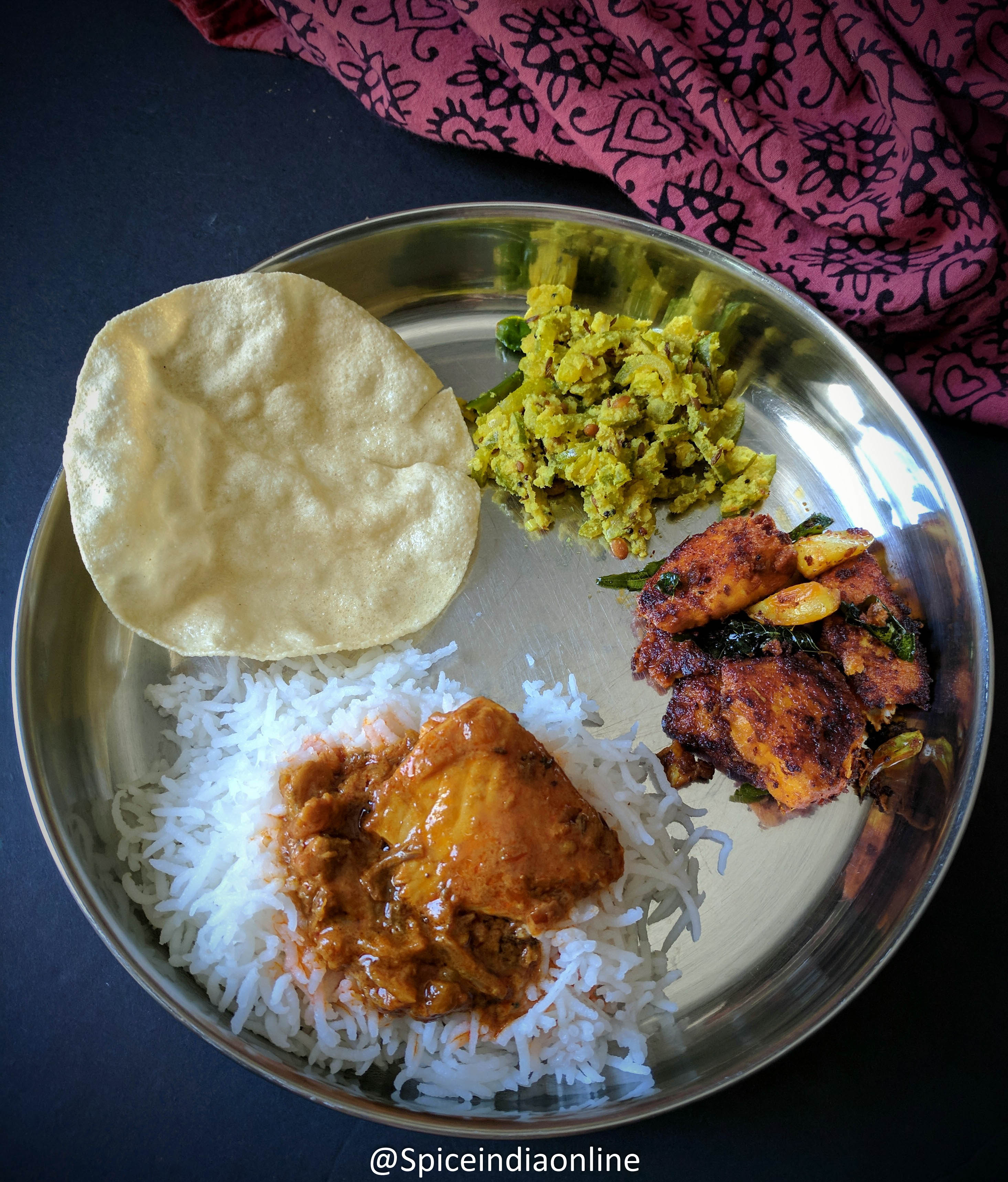 One of our lunch picks from Insta… Malabar Fish curry with Tilapia Fish fry, Snake gourd Poriyal & Appalam 😛