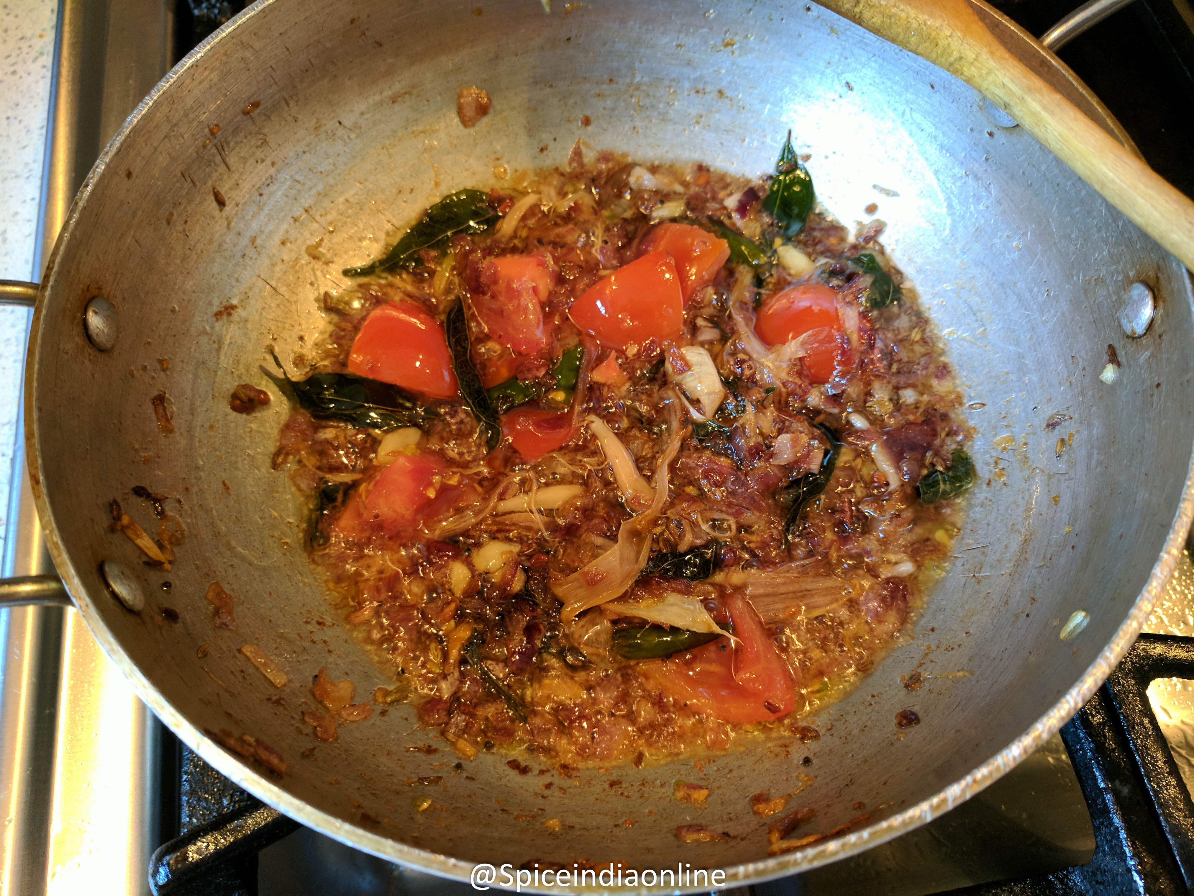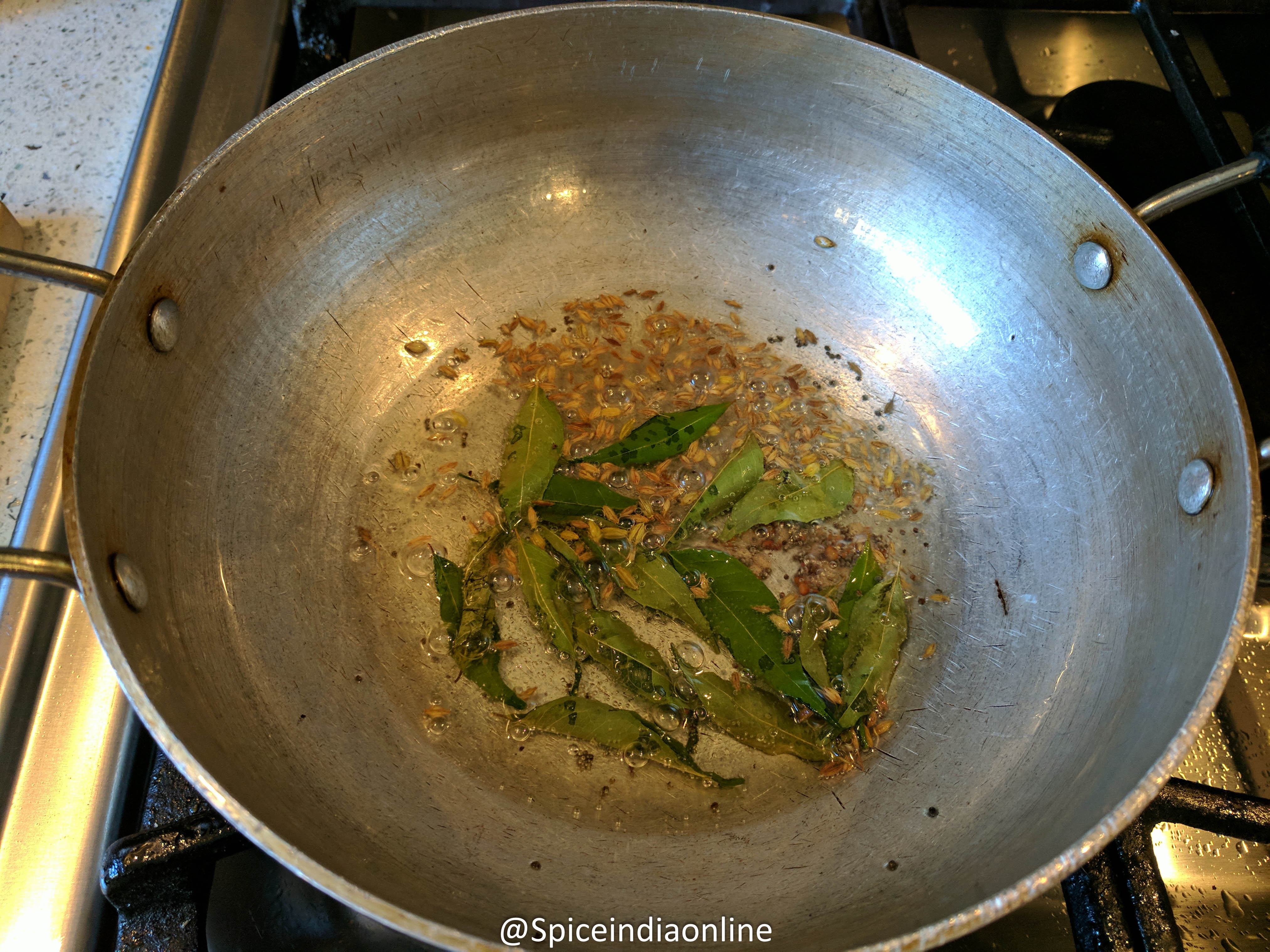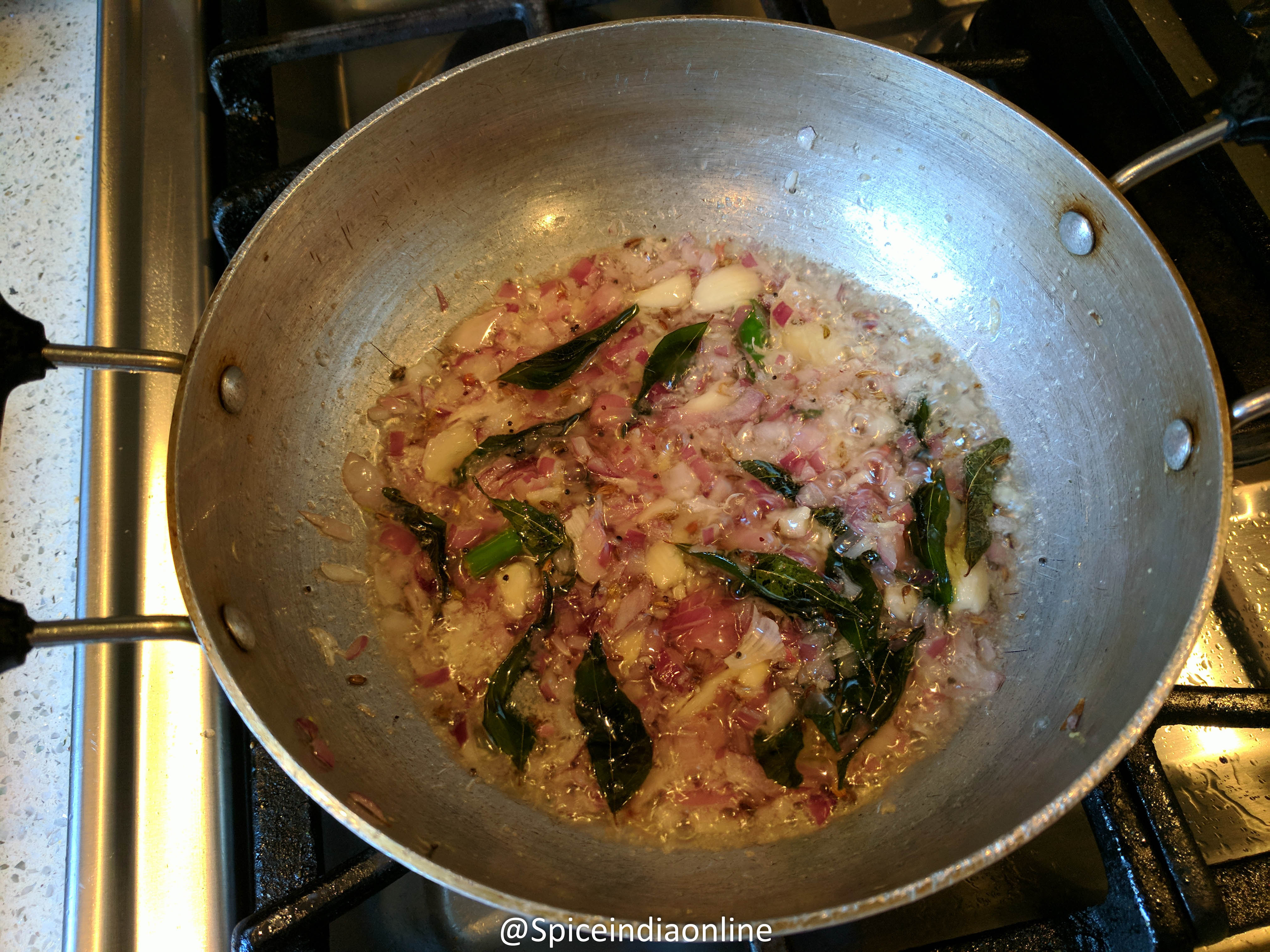 Heat coconut oil in a kadai and temper with mustard, cumin & fennel seeds. Some curry leaves to sizzle…
