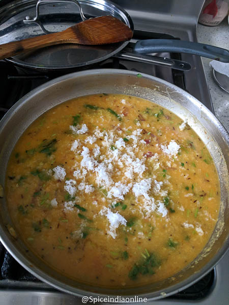 Masala Dal Tadka… obviously a north indian dal fry recipe made with garam masala, onion, ginger garlic and with a touch of my style…. 😆 a little coconut garnish! There are variety of ways you can make this dish… today we are going to see a simple home style dal made with Toor( pigeon pea)+ Chana dal (bengal gram)some coconut which we usually have it with rice or roti for our week night dinners.