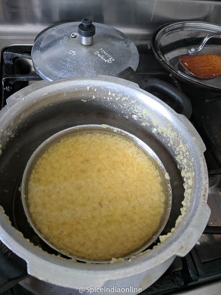 Before we start… soak toor dal & chana dal together for 20 minutes (soaking dal always helps to yield better cooked mushy dal and also is good for digestion) Pressure cook with enough water and little turmeric upto 4- 5 whistles. Once done mash it and keep it ready.