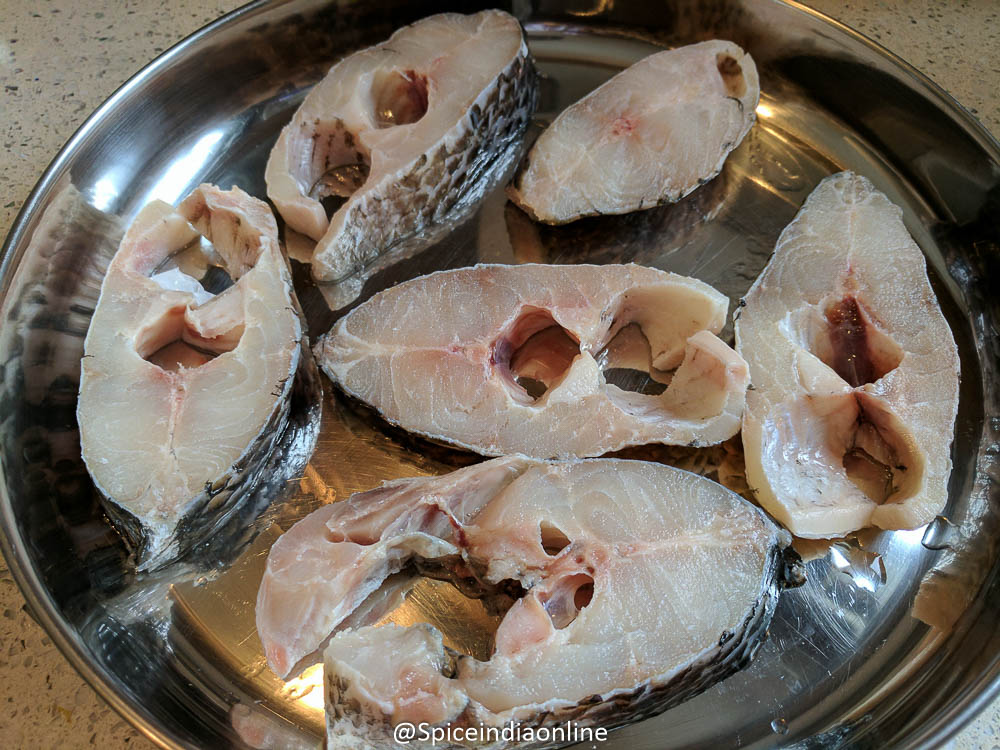 - Take fresh cut tilapia steaks or fillets. Clean the cavities and give a quick rinse in cold water, use little yogurt & turmeric to rinse off the fishy smell if any.