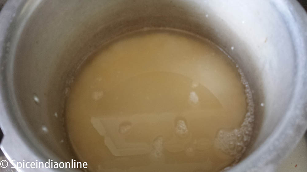 Pressure cook upto 3 whistles and switch off. Let the pressure release and then open the pan.