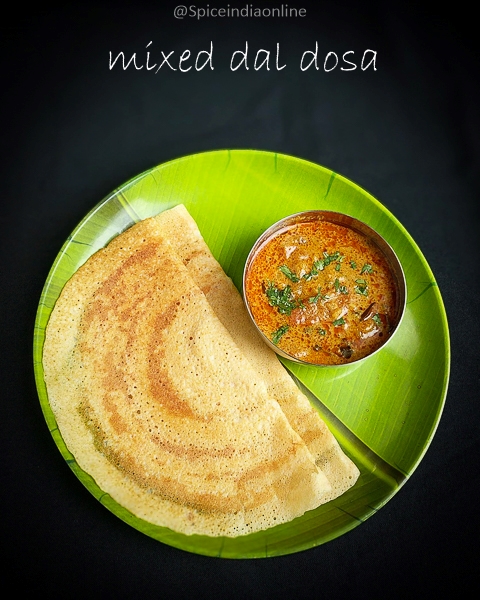 Mixed Dal dosa – a healthy dosa made with combination of dals which requires not fermentation.