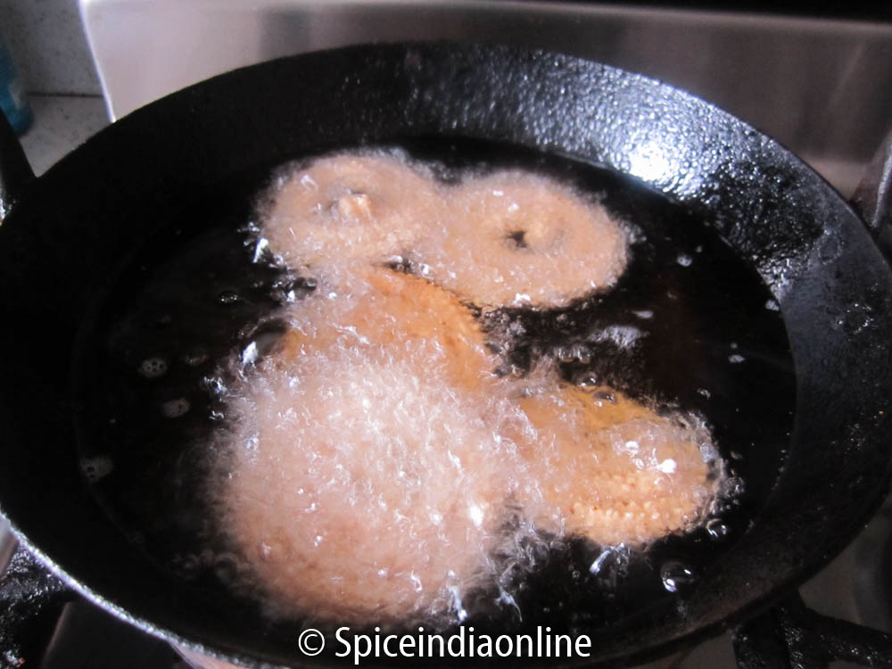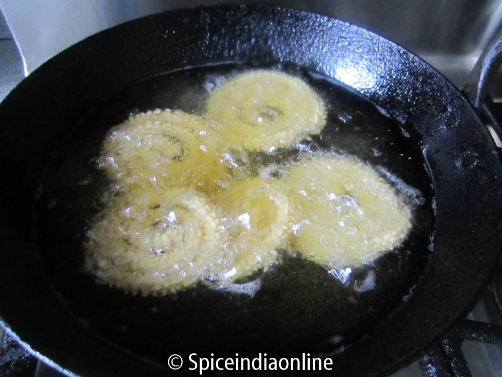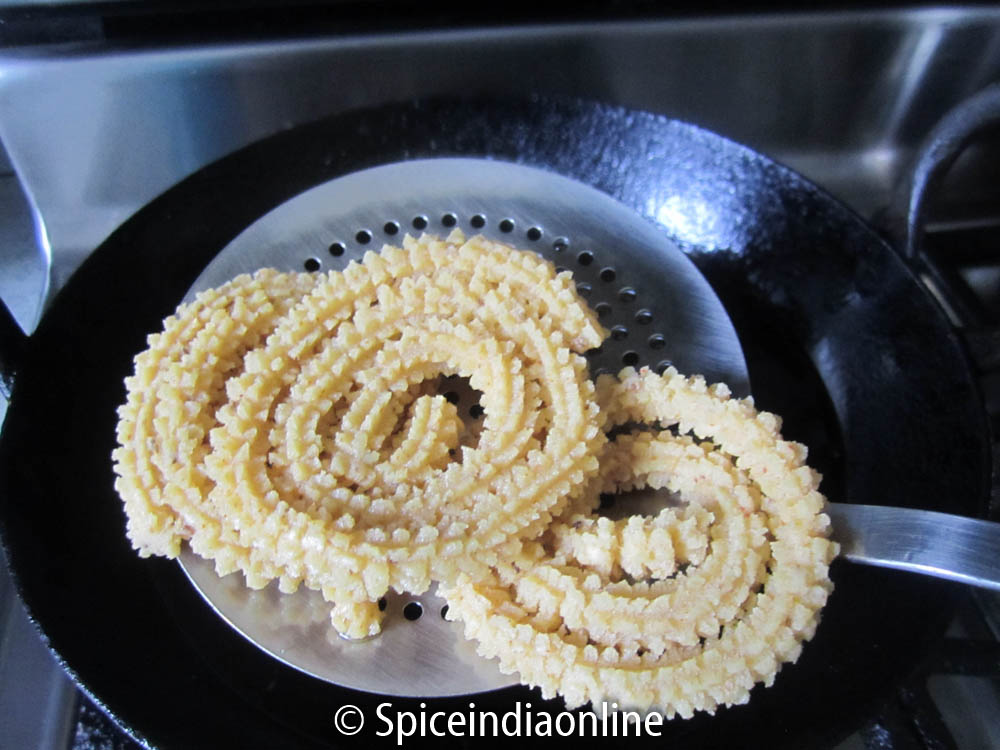 2. Always fry the murukku on medium high flame, otherwise it will brown the outer layer, and dough will be partially cooked inside.