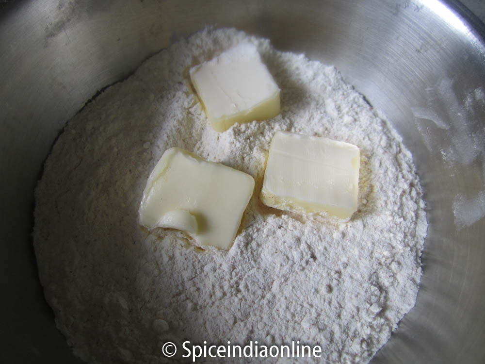 Combine  well to for even mixing. Add butter and cut that into the flour to make a crumbly texture.