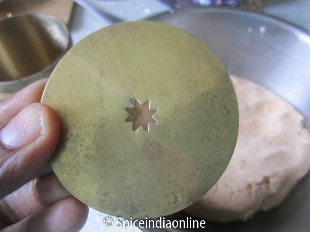 6.  You can use any press, regular thenkuzhal will also work, just shapr them spiral or just press directly in oil for irregular shapes like butter mixture.