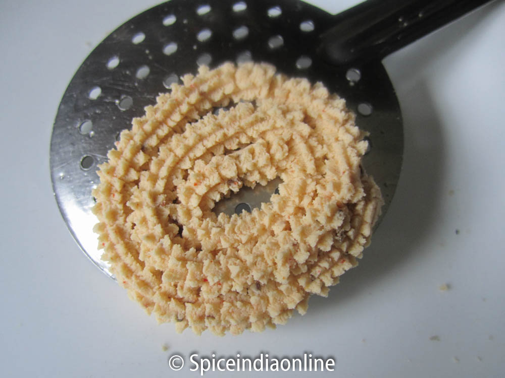 8. This is a spicy version of mullu murukku, cut by 1/2 teaspoon if you prefer less spicy.