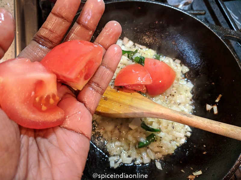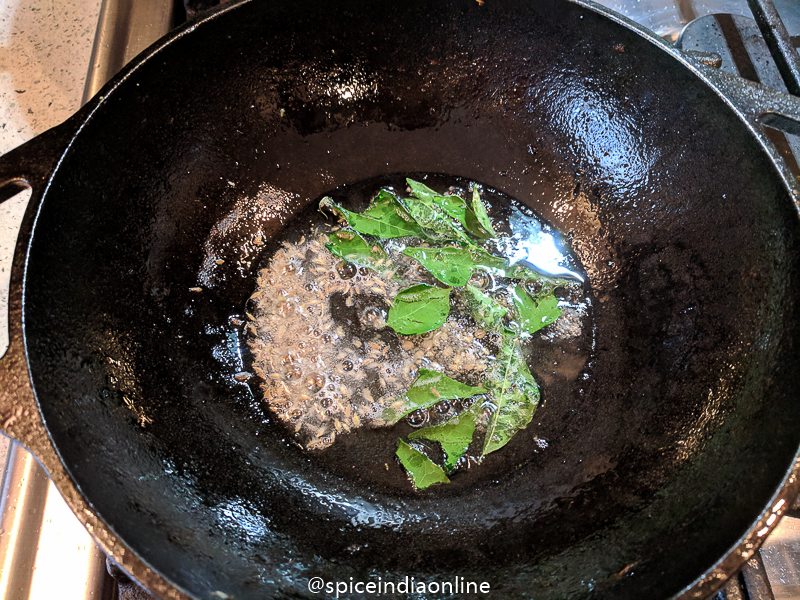 - Heat oil in a pan and splutter mustard seeds, cumin seeds and curry leaves.