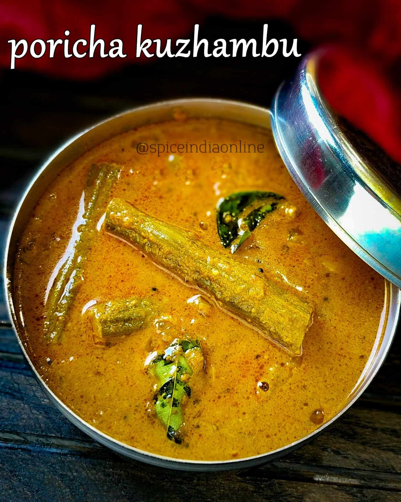 There are many versions to Poricha Kulambu , some are made with tamarind and some without. Our homestyle always include a little tamarind extract.