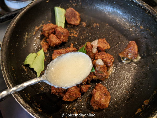 At one point the mutton will look extremely dry with the masala literally turning dark brown and the texture of the meat will look kind of crispy on the outer edges… that dry mutton will actually make “chick chick” when you saute them in the pan, that’s how it got its name in our house… that sound will prompt us that this dish is made!