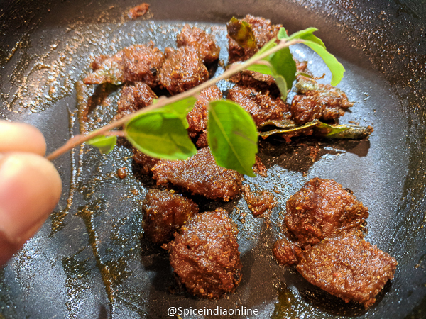- Finally finish off with some curry leaves.