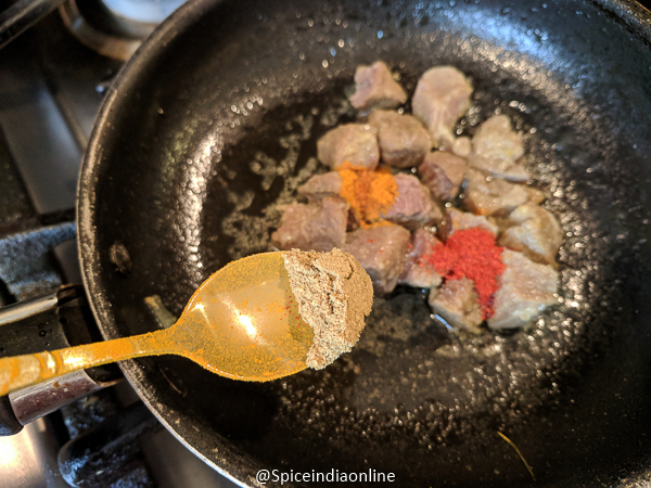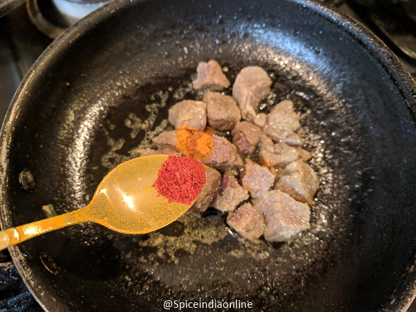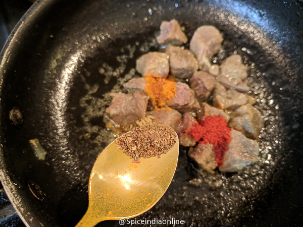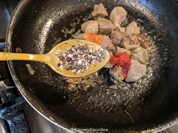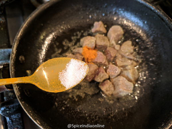 - Adding 1/4 teaspoon salt (meat is already cooked with 1 teaspoon salt and this one is for the masala powders)