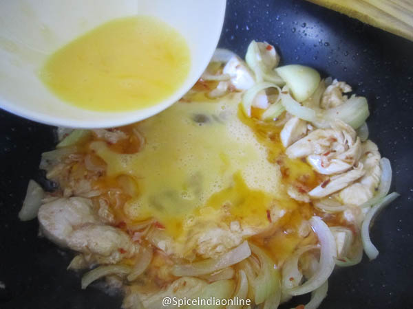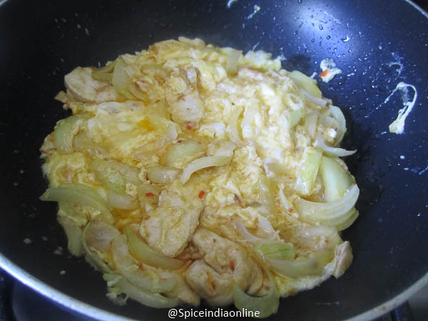 It will fluff up and then you scramble with the onion chicken mixture.