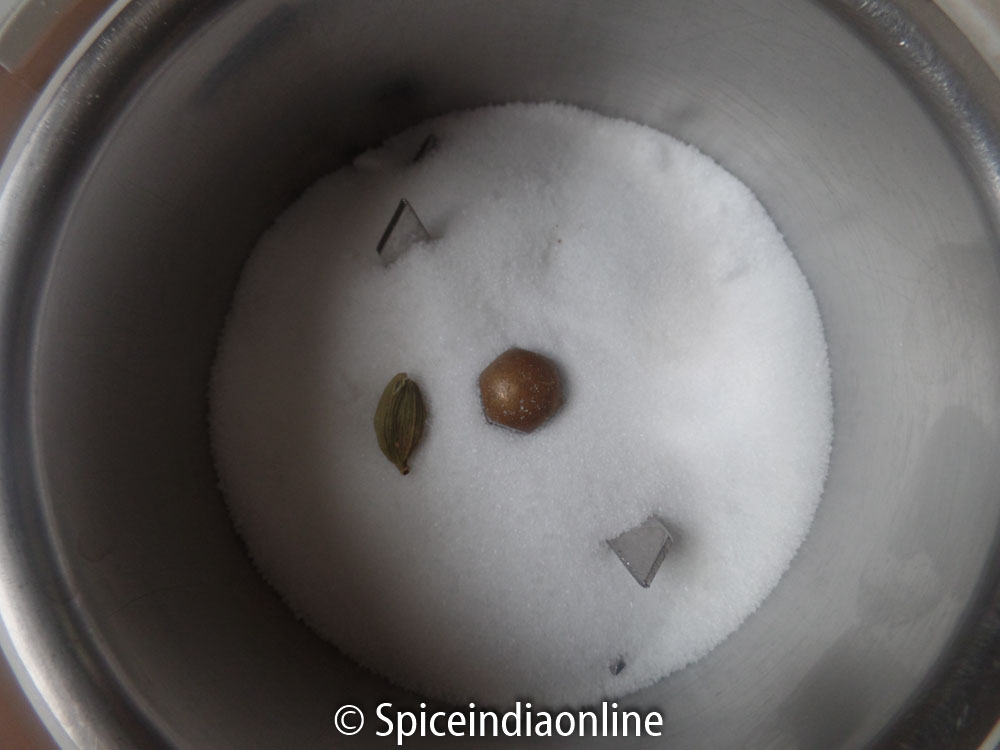 Recipe is pretty easy. Dry fry the yellow moond dal / pasi payir / payatham paruppu in a kadai till it releases nice aroma.  Do not brown too much, we need light golden tinge on the dal. Switch off and cool that completely. Combine sugar with cardamom in a mixer jar and make a fine powder. Then powder the roasted moong dal to fine powder. You may sift the moong flour if you want using a fine sieve.