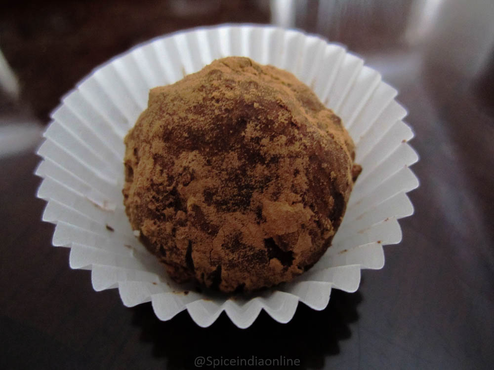 Take a small portion and roll it in the shape of a ball and dust it with cocoa or you may roll it over the ground almonds.
