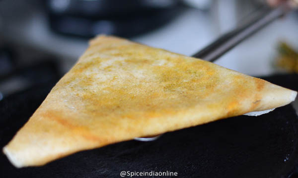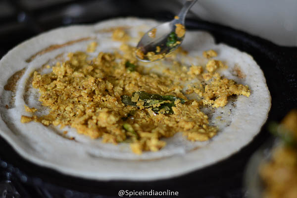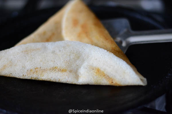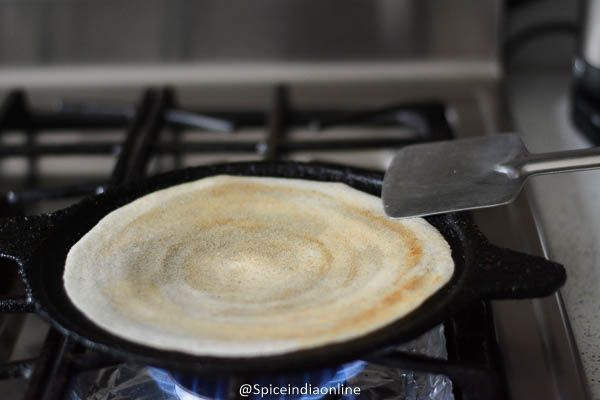 Flipping the dosai is normally not done… you can either cover and cook the dosai or flip like me to cook the other side. Not too much but just for few seconds and immediately flip to the other side.