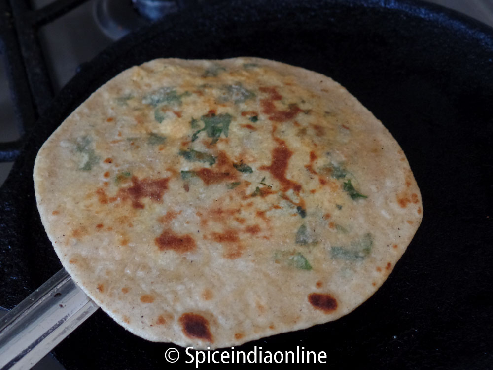 - Cook parathas over medium high flame and cook in the out evenly.