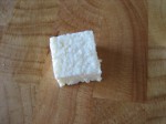 Remove the cheese from the sieve (will look in circular shape) and cut into small cubes, but edges might tend to crumble and thats OK.
