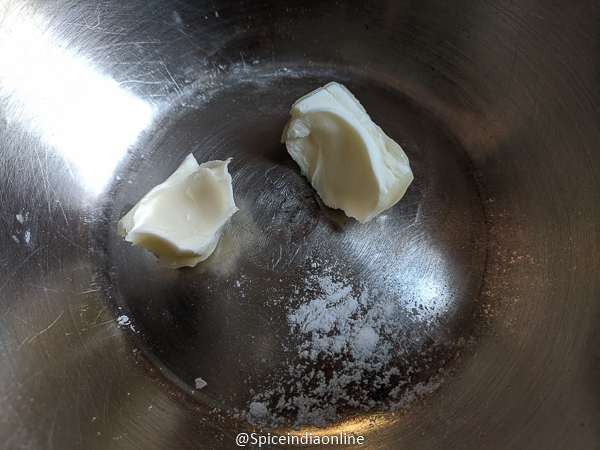 - 1 tablespoon butter / vanaspathi / shortening anything works (at room temperature)