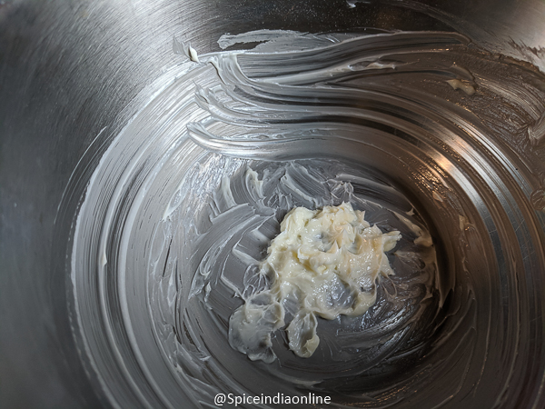 - Take butter and baking soda in a bowl and mix well with your hands to make a smooth paste.