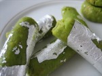 Pista flavoured khoya /mava shapped in the form of rolls.