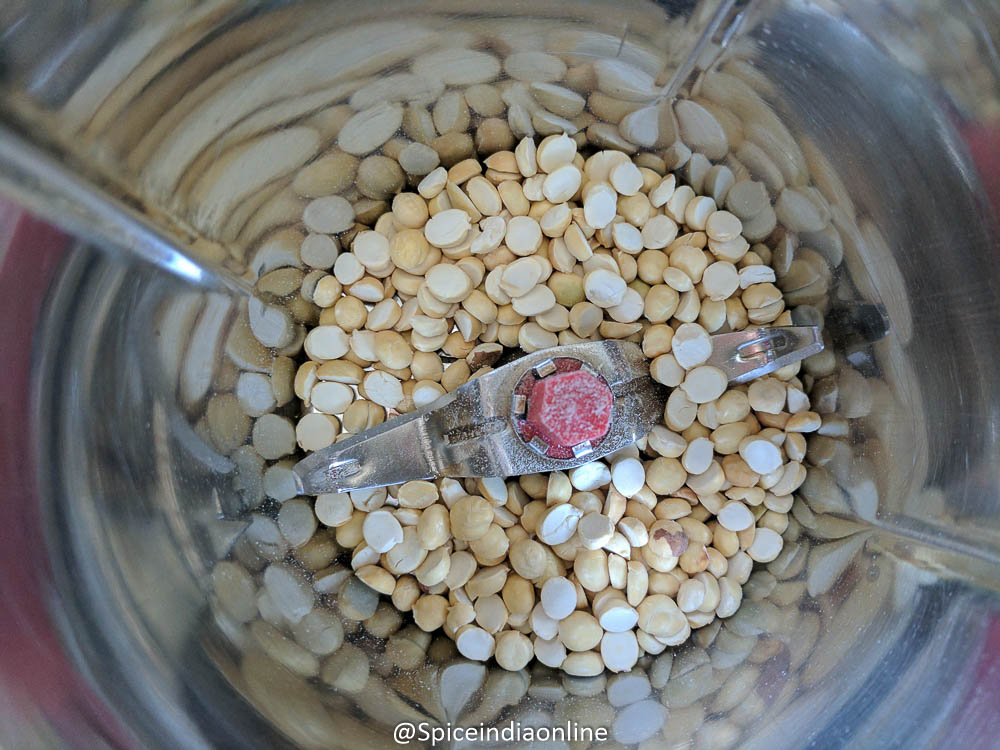 To start with grind roasted gram (pottukadalai) in a mixer to fine powder. (use about 3/4 cup kadalai)