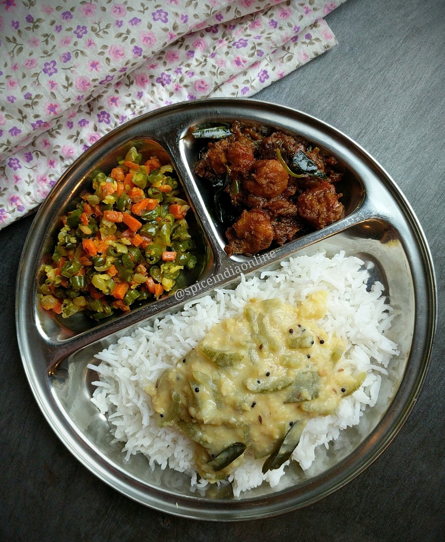 Garnish with curry leaves. Enjoy with rice topped with ghee…. Our plate looked like this….
