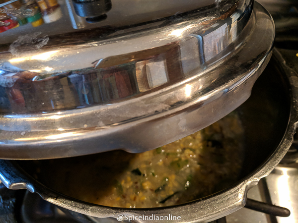 When you open… everything will be perfectly cooked… the dal will be mushy, the veggie will hold its shape and all the tempering imparts the flavor & comes to the top.