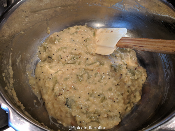Gently mash it with a ladle. (add a little coconut garnish and light milk will make it “kootu”) the thick version.