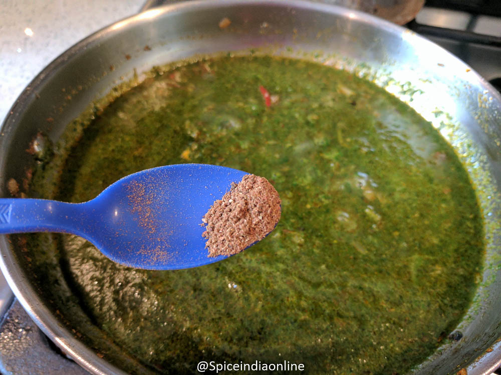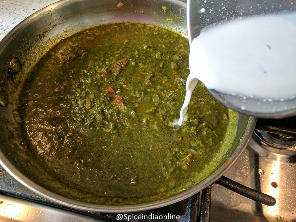 Add that sugar in there to add slight touch of sweetness to the gravy and also to keep that spinach a little green.