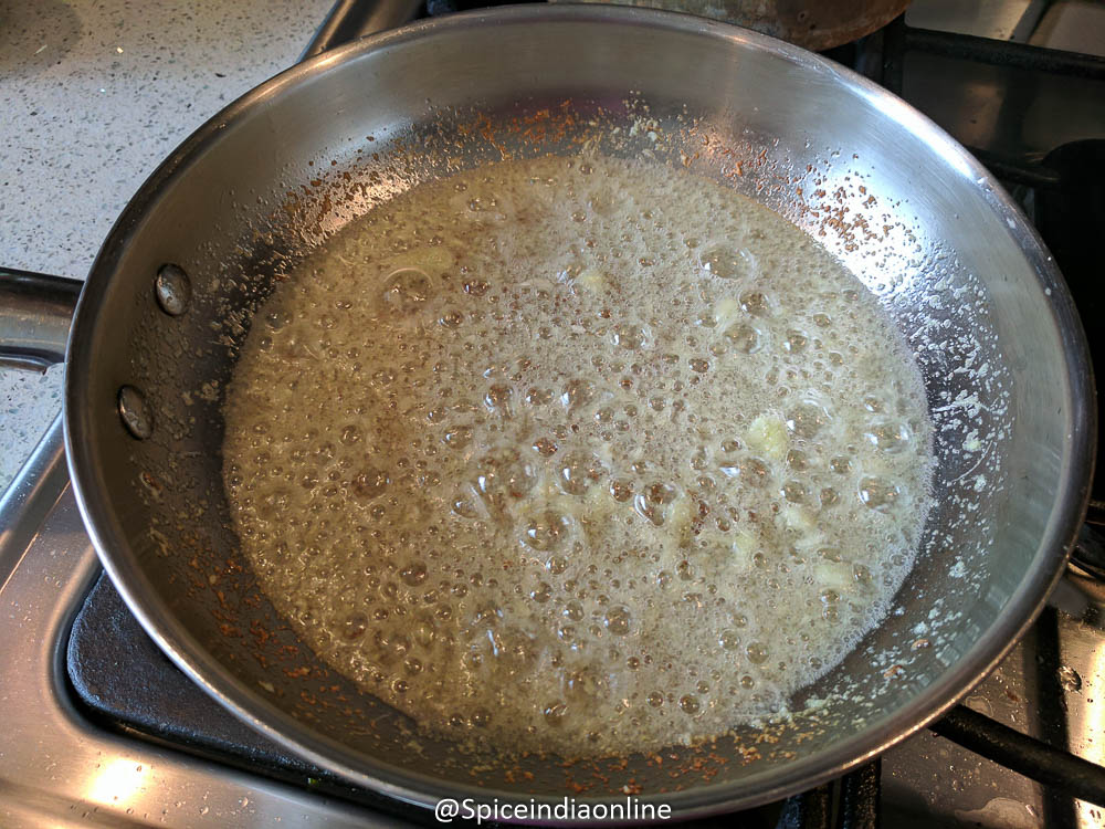 • Saute the ginger garlic paste in that hot oil for sometimes until they turn to light brown color.
