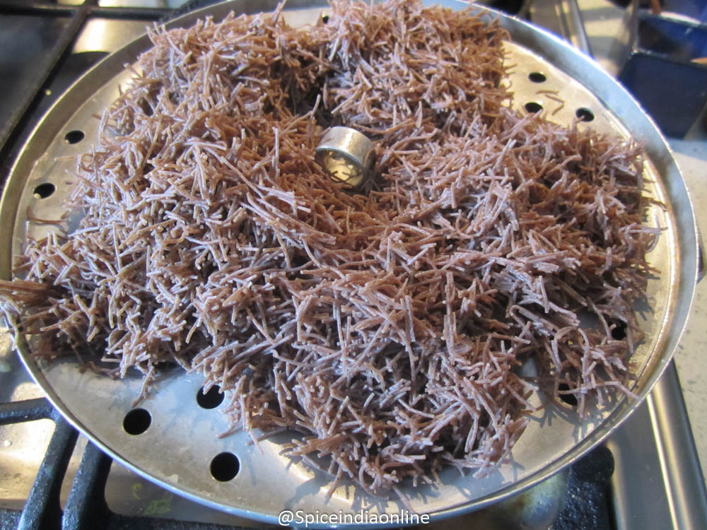 As per package instruction- empty the instant semiya in bowl filled with room temperature water and let it soak for 2-3 minutes. Then drain them completely and place in a steamer or idli cooker and steam for 7-8 minutes. Rice cooker steamer also works for this step. Once done, let it cool a bit and then fluff up and separate with a fork and let it rest while you work on the tempering.