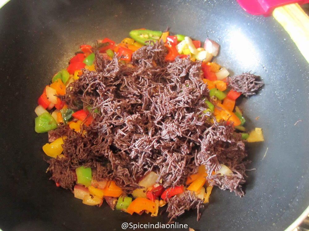 - Simple tempering over the cooked vermicelli works but taste bland so make it colorful that way its more appealing.