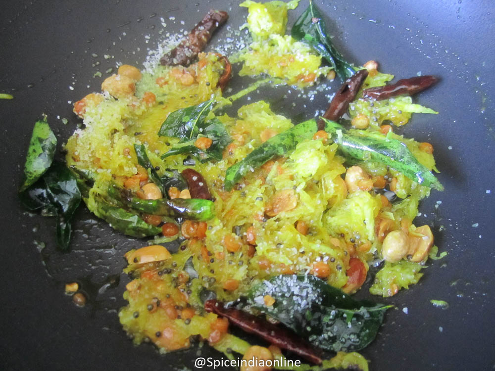 Now add the grated mango and cook till they become soft.