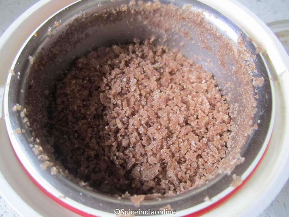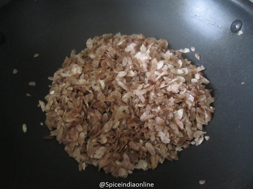In the same pan roast the red aval / rice flakes for 5 minutes over medium low flame until nice aroma comes. Set it aside and let it cool a bit. Once cooled, grind it in a mixer to coarse powder.