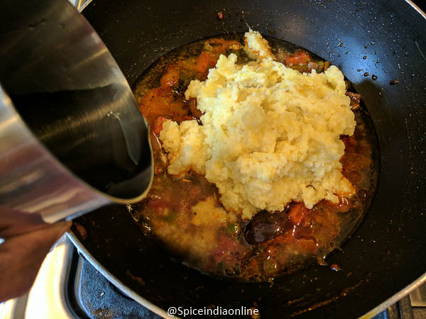 Add in 1 cup of water to this and cook for few minutes to make the millet blend well with the sambar.