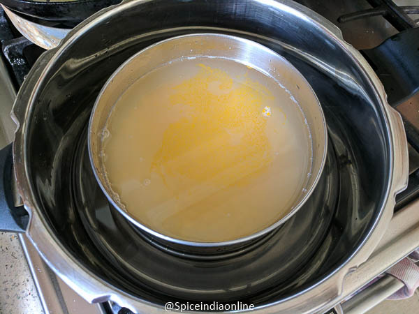 Place the samai millet and toor dal in a pressure cooker insert pan along with 5 cups of water and pressure cook for 5 whitsles.