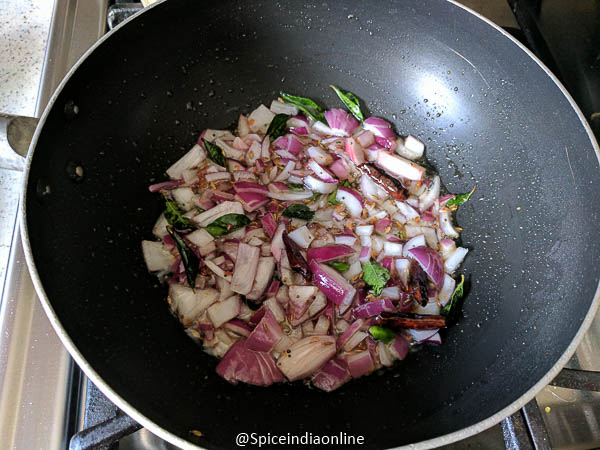 Add in chopped onion and saute well till translucent.