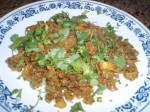 10. The whole dish should be very dry like porial. Keep stirring them. Once it looks completely dry and cooked, now add chopped coriander leaves .