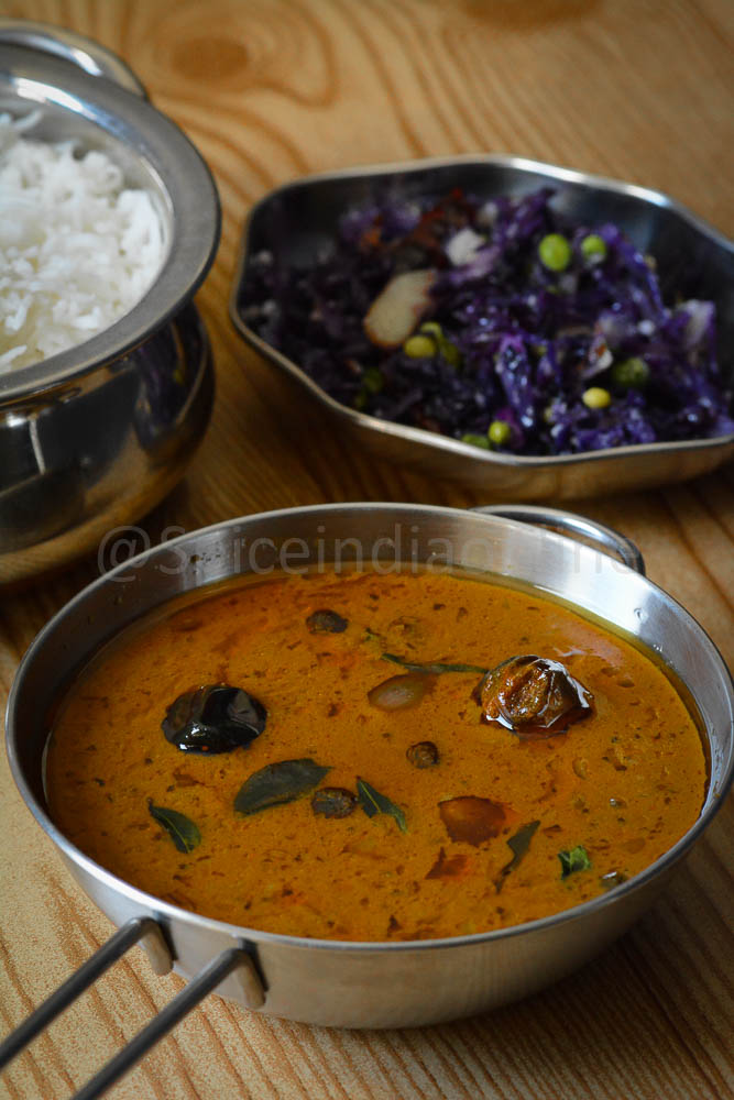 We enjoyed this kuzhambu with simple purple cabbage green peas poriyal. A simple appalam can pair well this kuzhambu… heavenly!