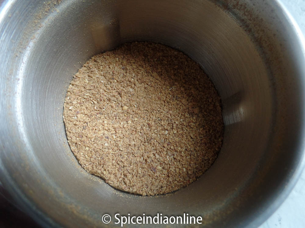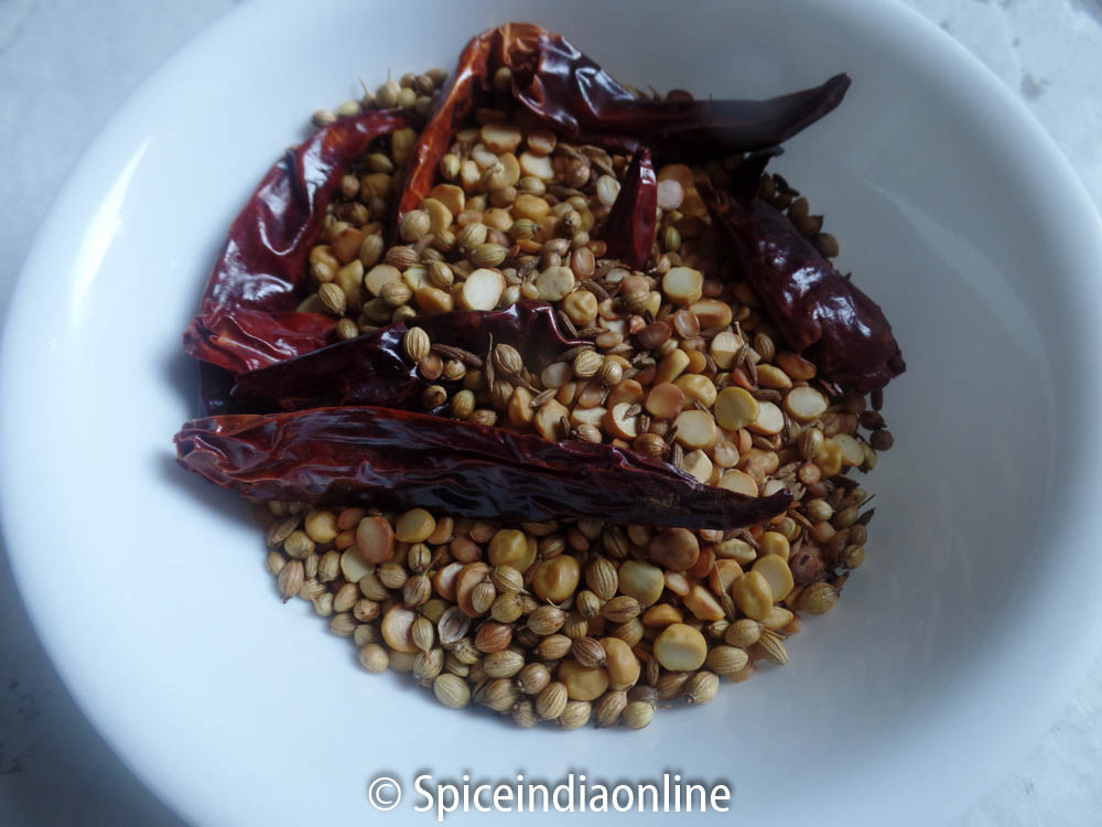 Dry roast all the ingredients in a kadai until slightly golden. Make sure to roast these over low medium flame and take care not to burn. Slow roasting ensures even cooking and browning. Once done, let cool completely and grind to coarse powder. Store in an air-tight box for up to a week. Add a few teaspoonful to any sundal variety before serving or sprinkle some on your vegetable curry.