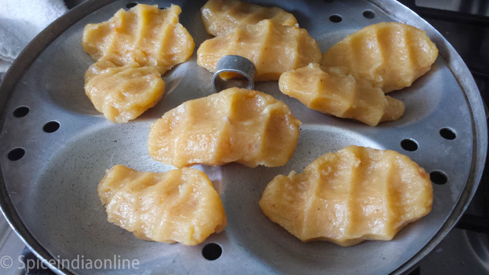 Arrange the dumplings in a idli steamer/ rice cooker steamer / bamboo steamer. Cover and steam for 10 minutes over medium flame.