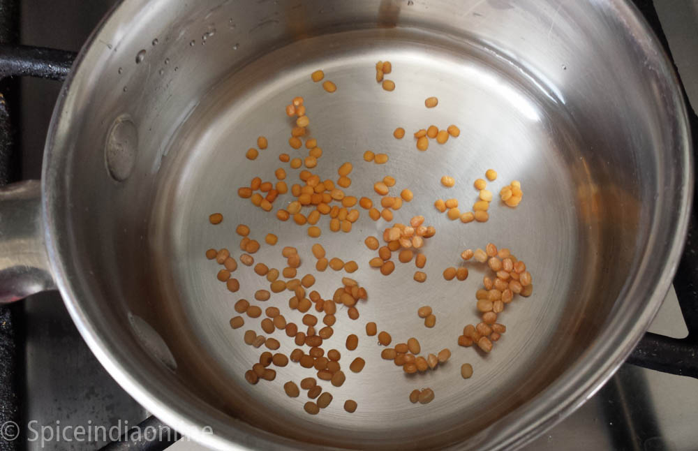 Cook this raosted dal in some water for 5  minutes over medium flame.  The dal should be firm but slightly soft once its cooked. Strain the water and keep the cooked dal aside.